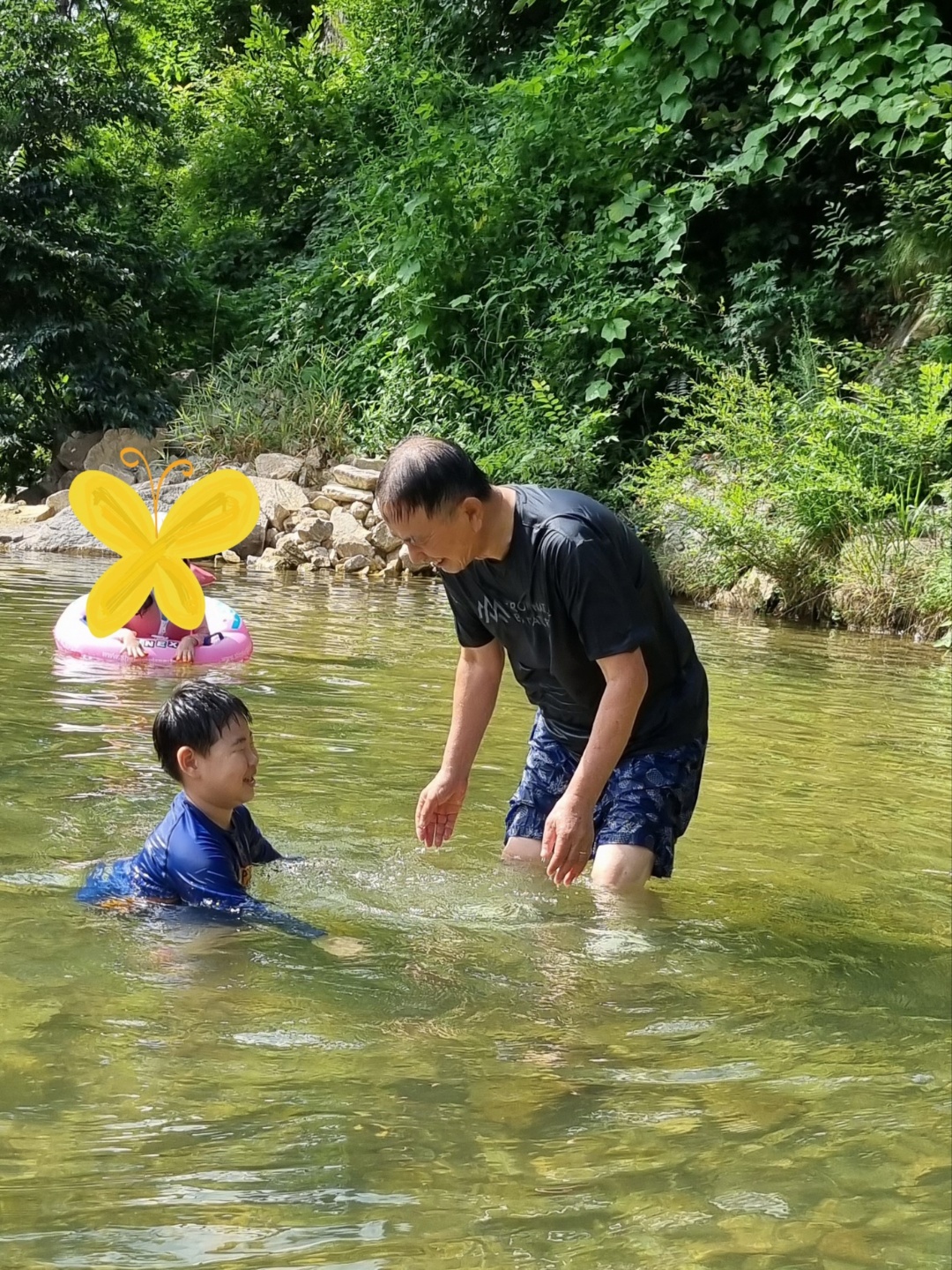 할아버지와 물장구를 치며