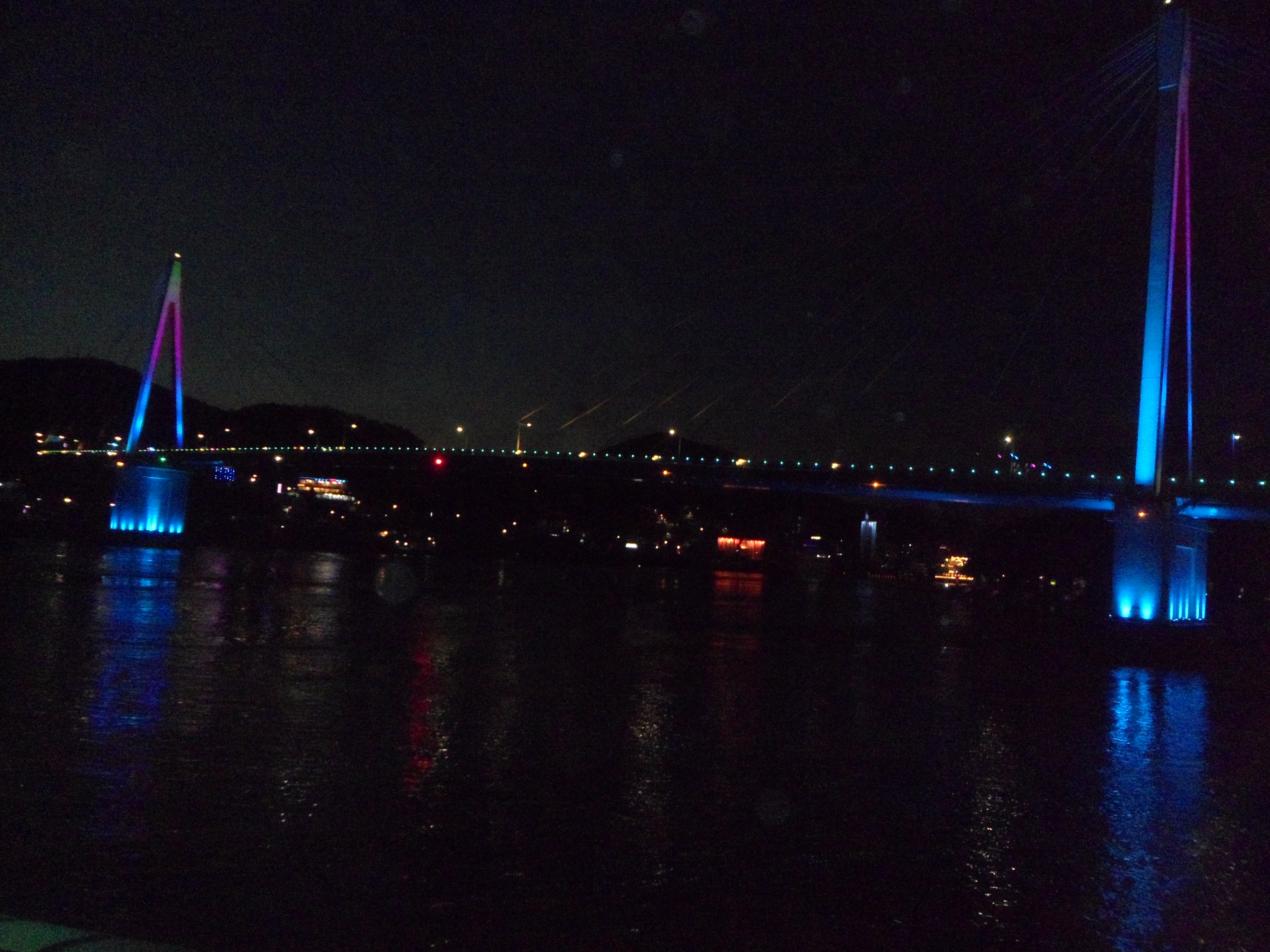 어둠 속에 돌산대교가 우뚝 섰다