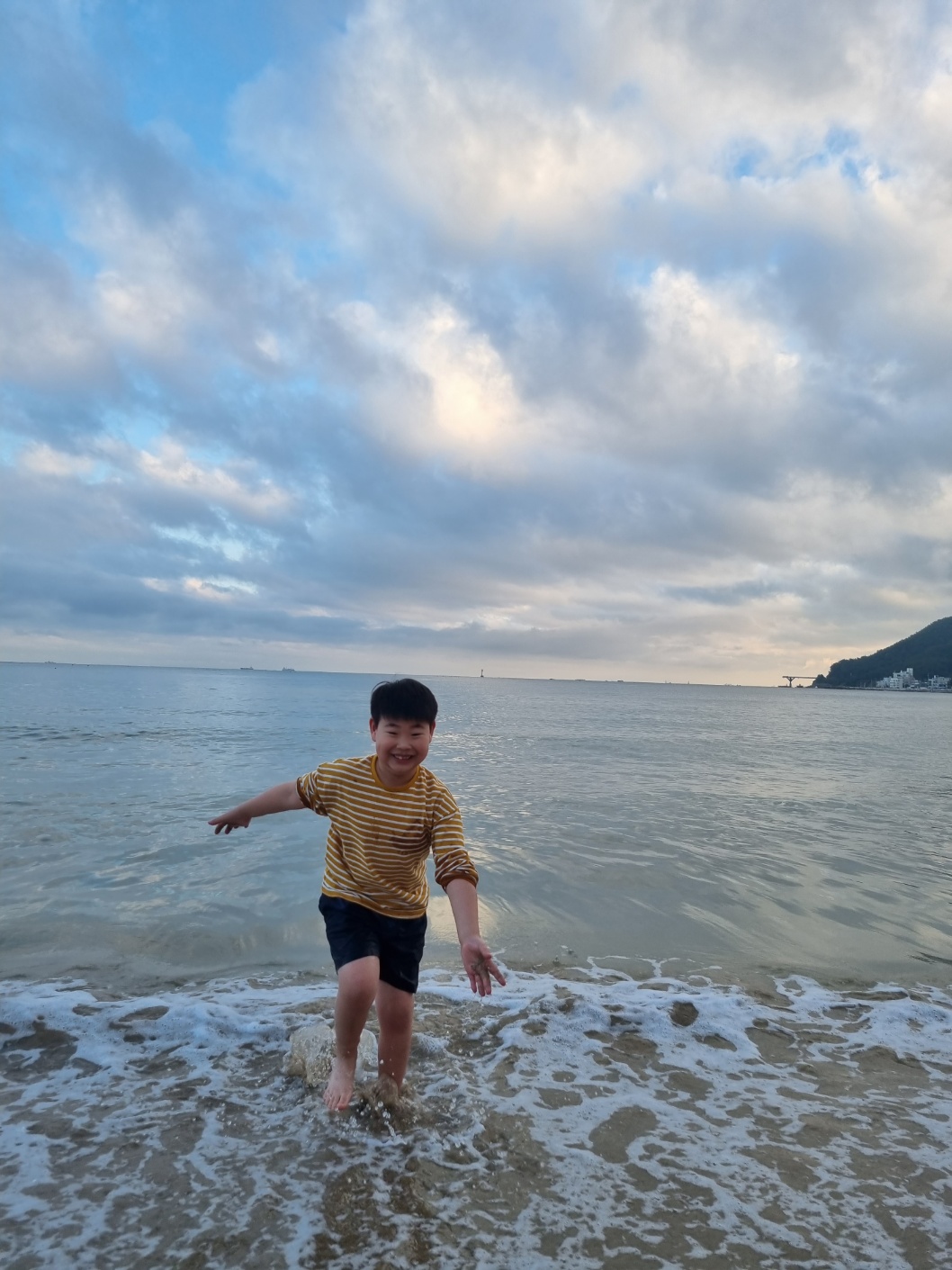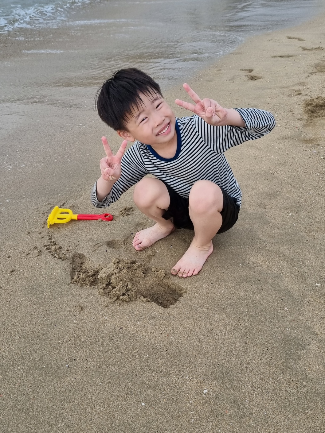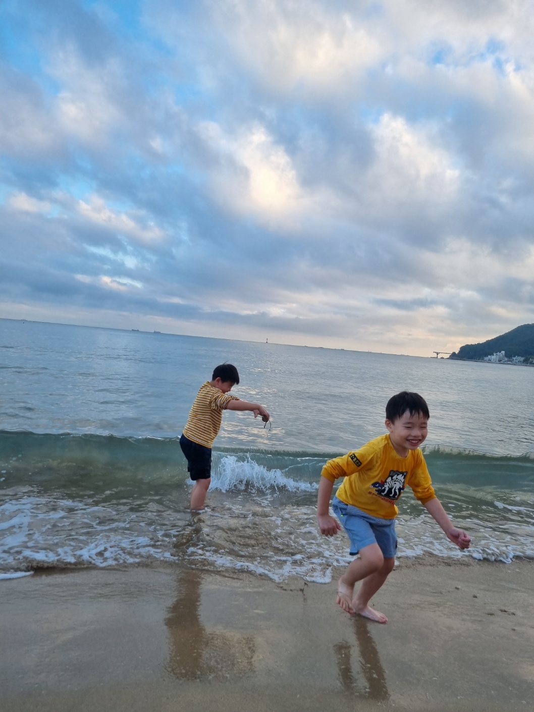 너무 어려서 아이들이 바닷물에 들어가지는 못했다