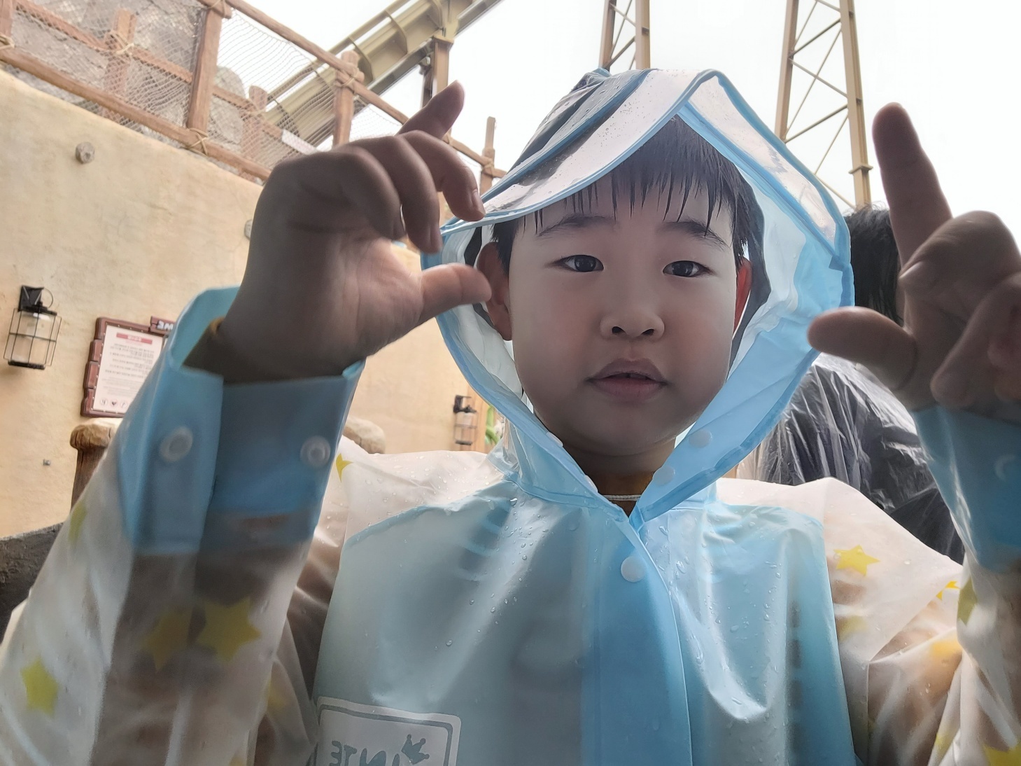 우비를 입은 재정이 모습이