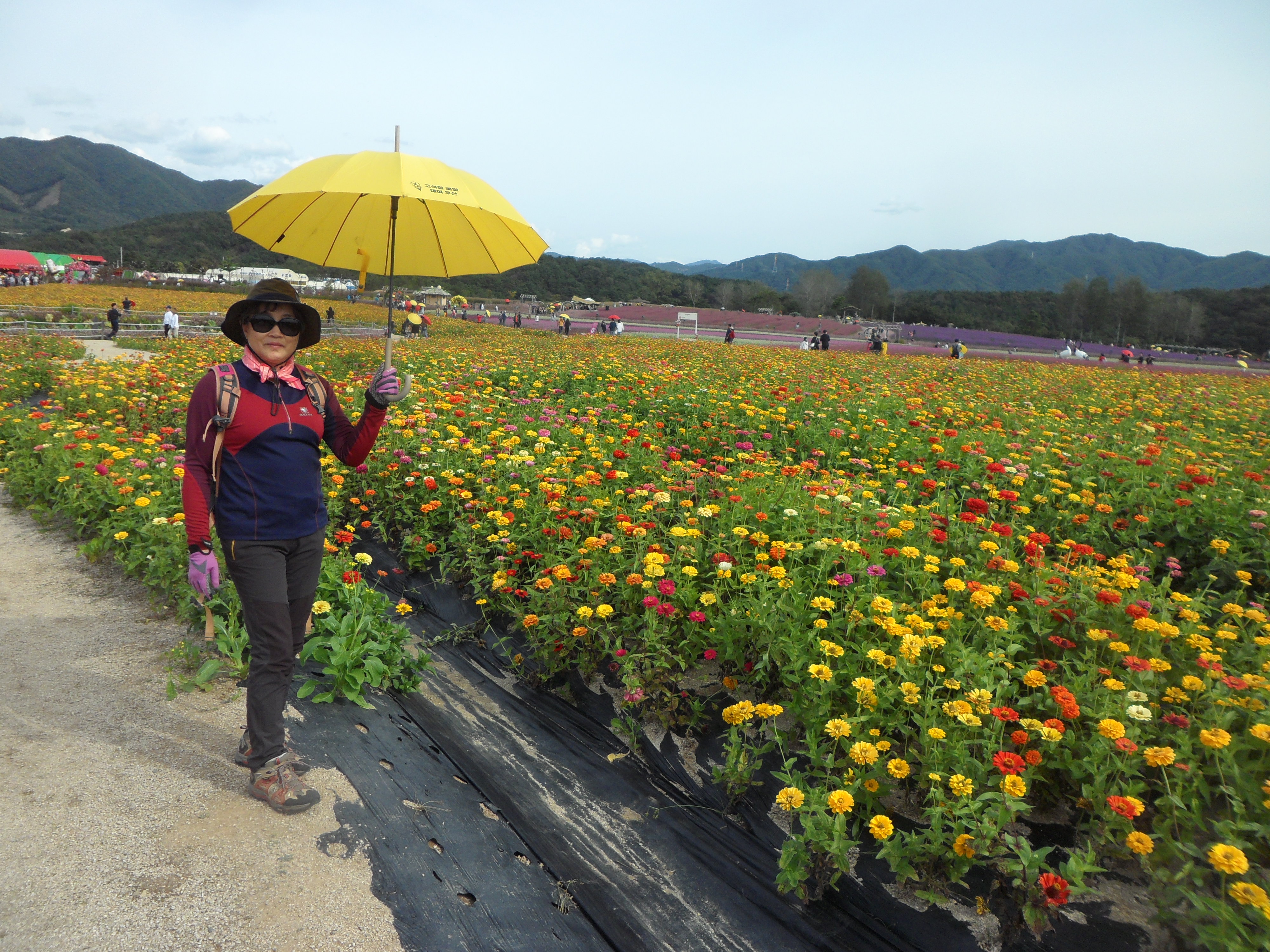 꽃밭을 누비는 우산의 행열도 꽃이다