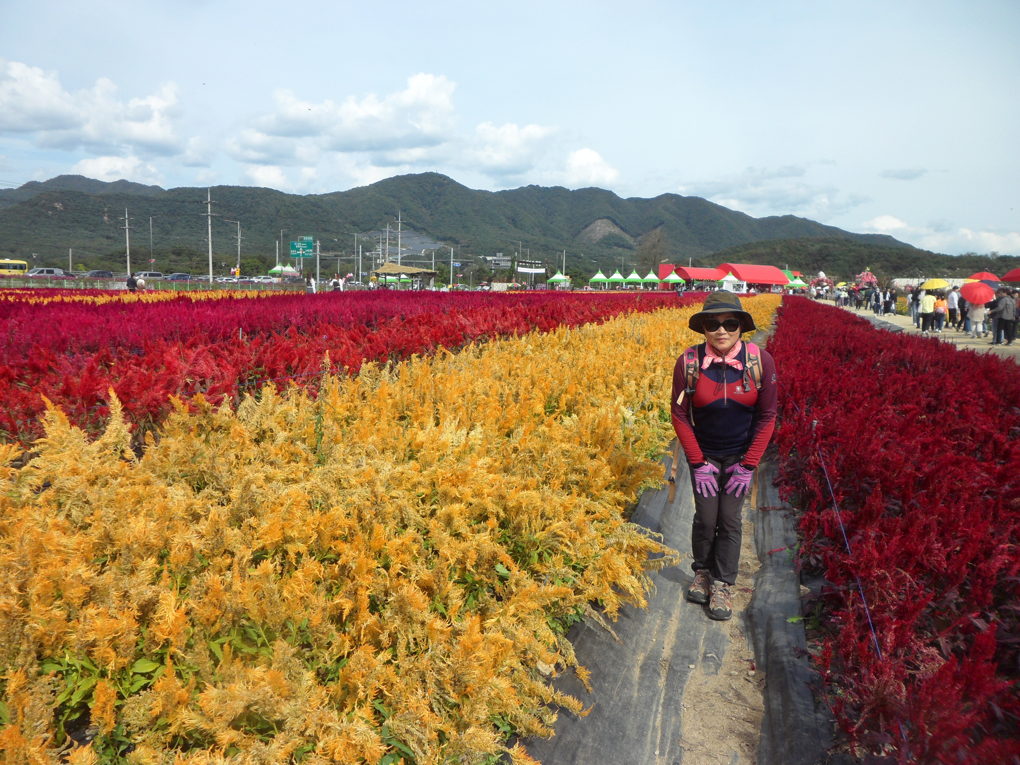 넓은 들판에 군집으로 피어난 촛불 맨드라미