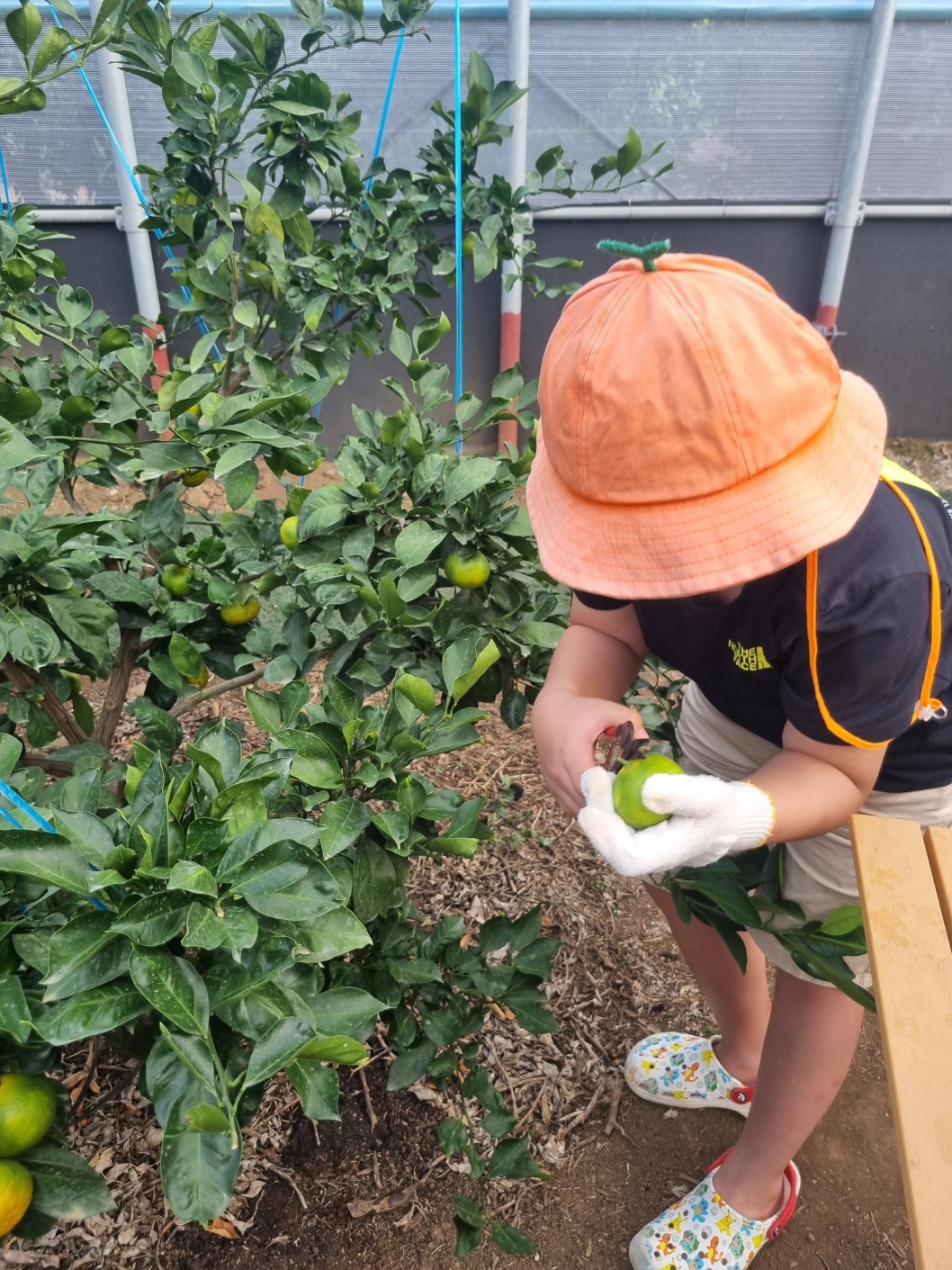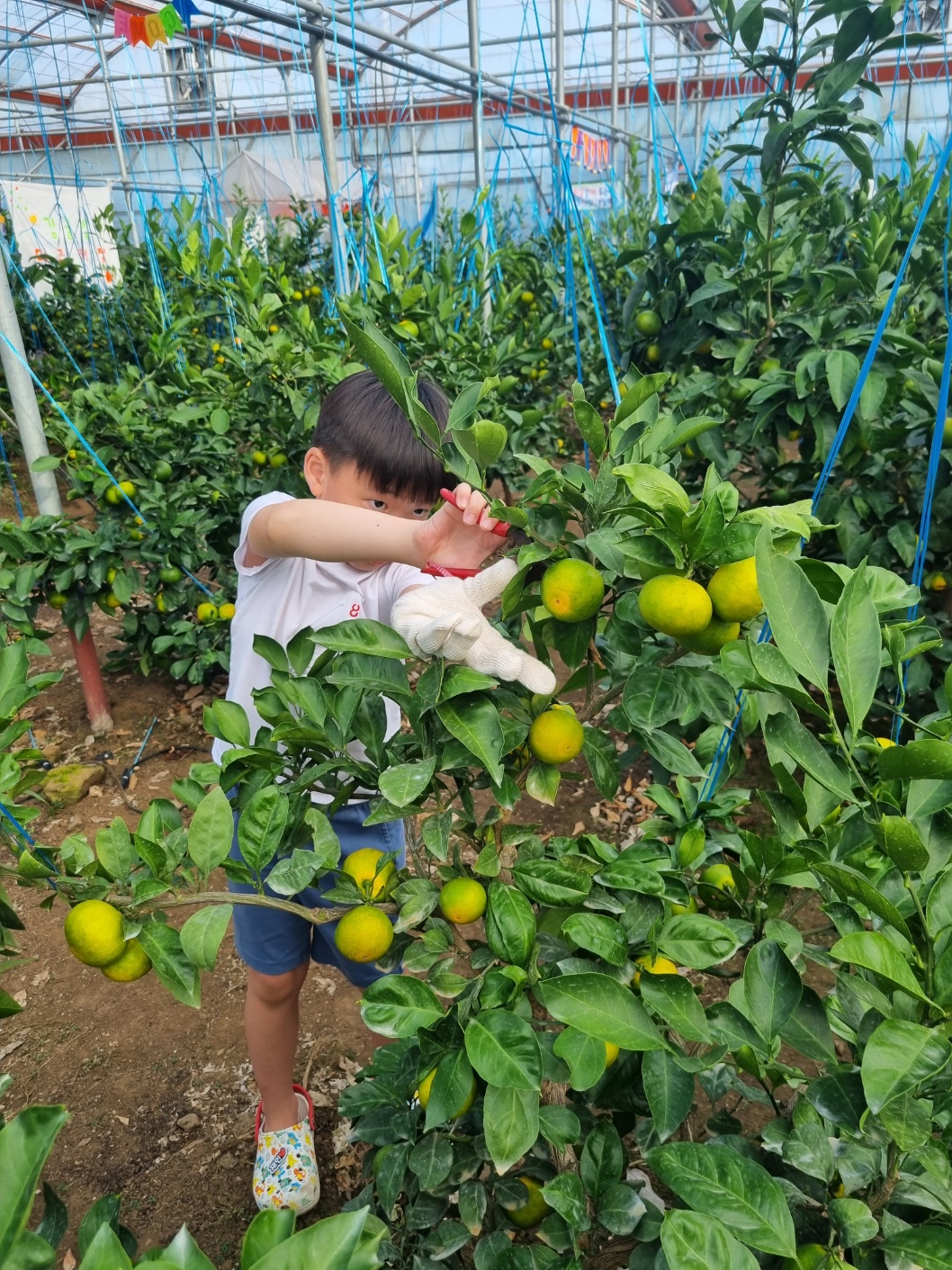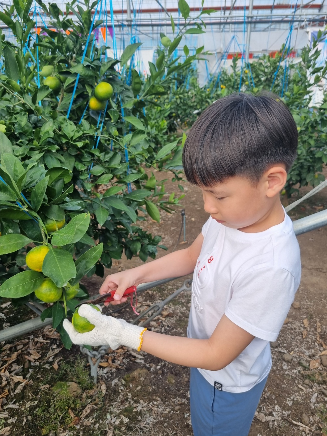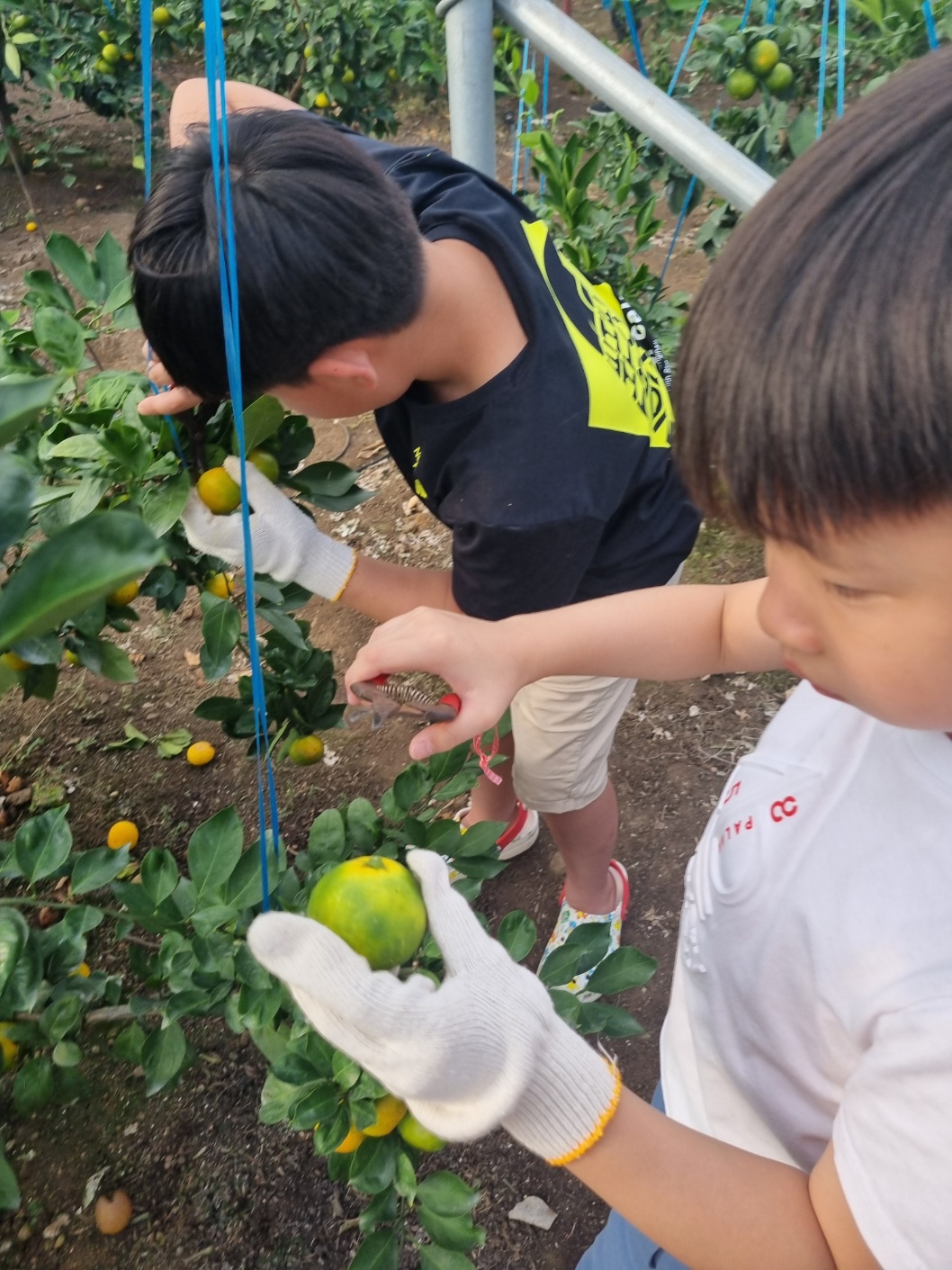 농장주의 가르침대로 감귤을 땄다