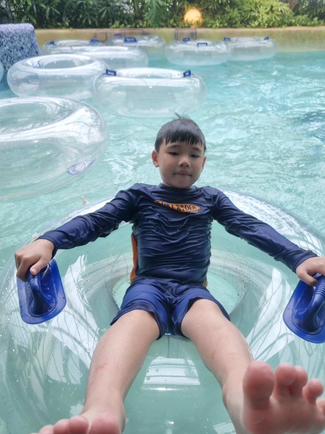 리조트 수영장에서 튜브놀이