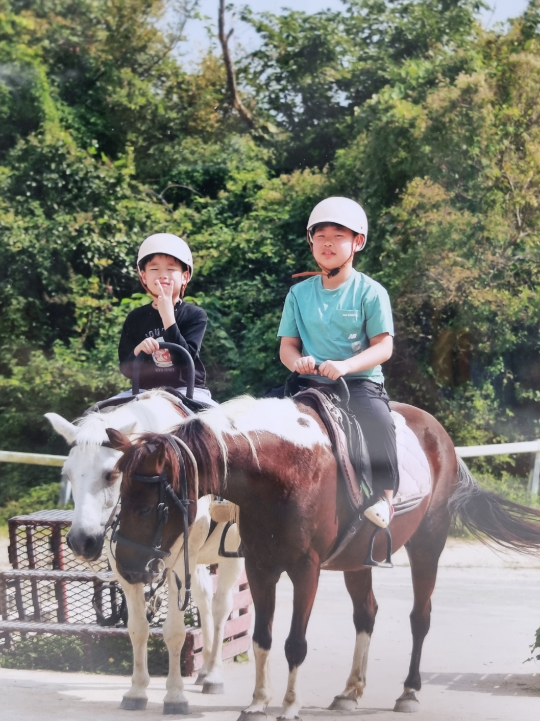형제가 나란히 말을 탄 모습이