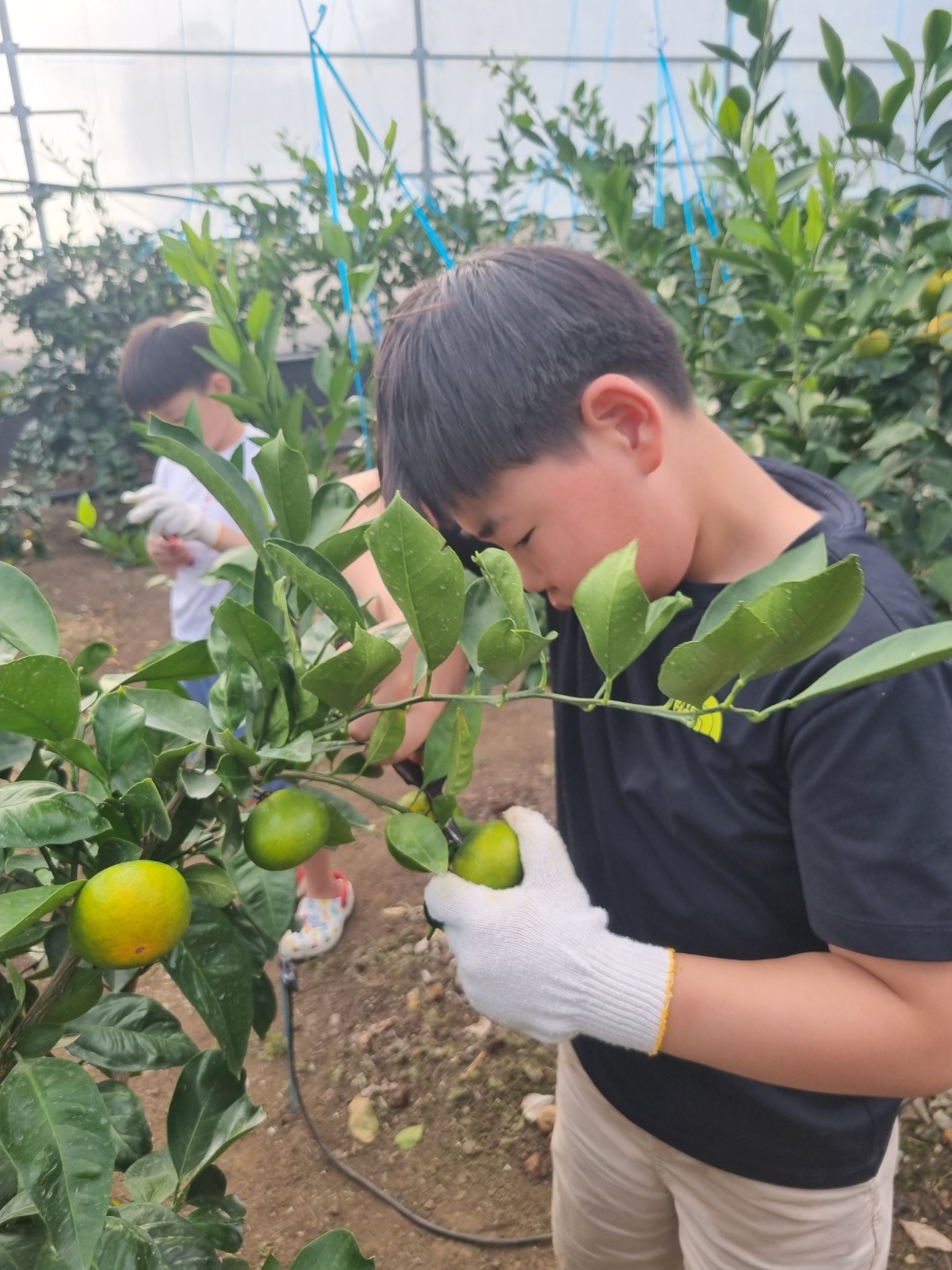 감귤나무를 조심히 다루며