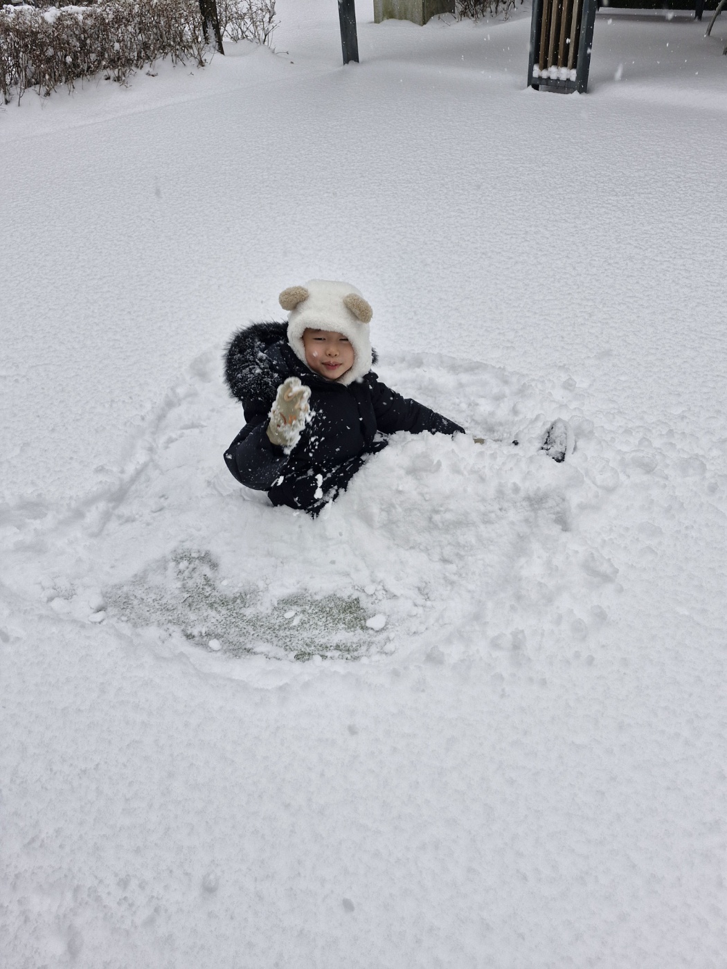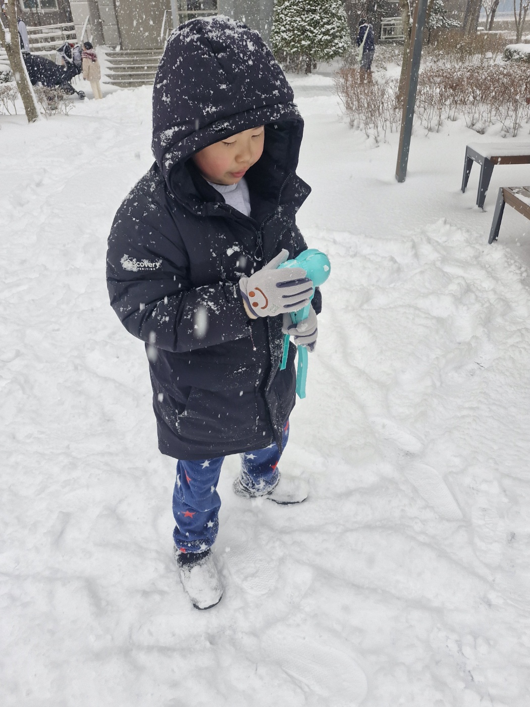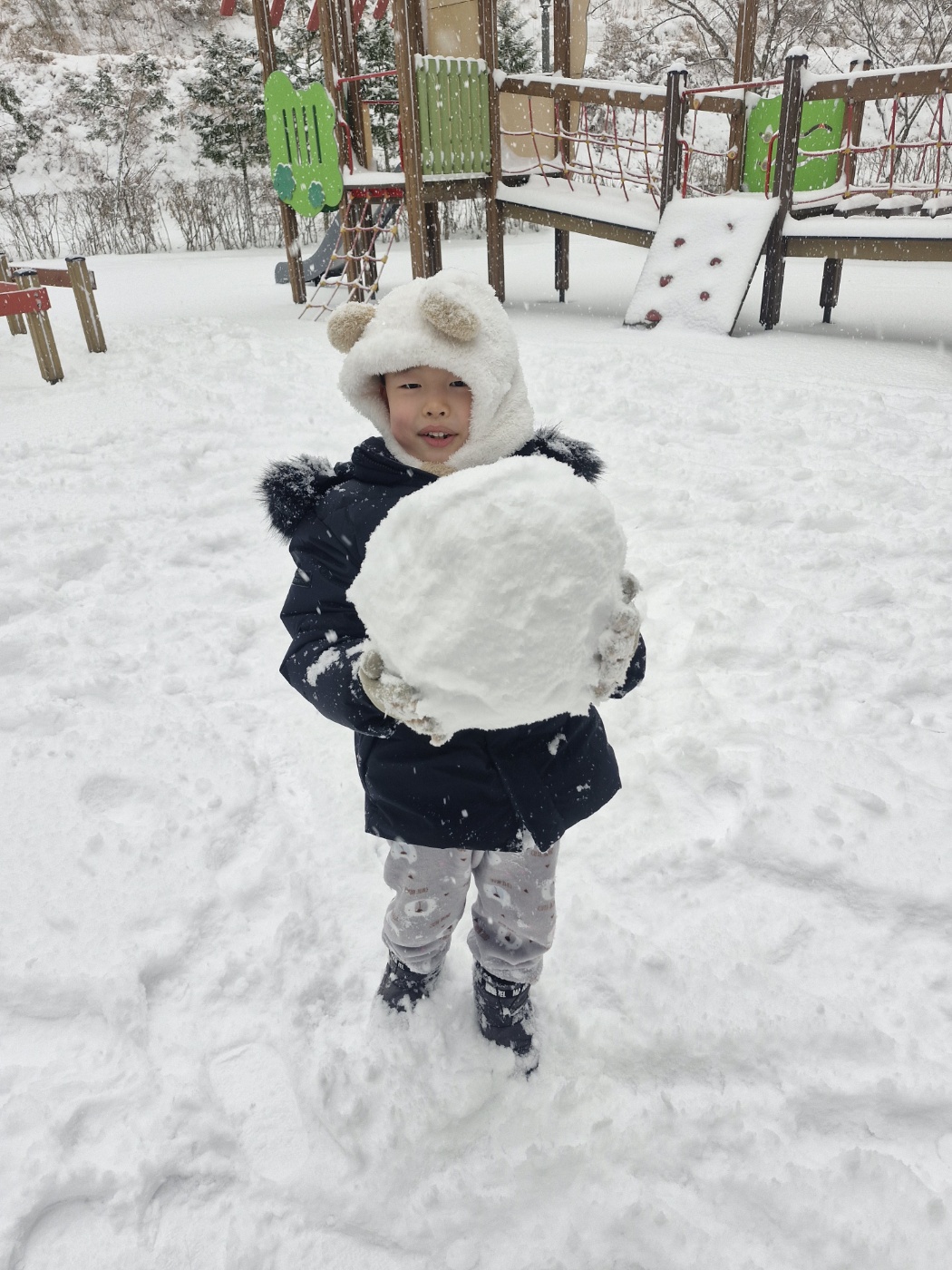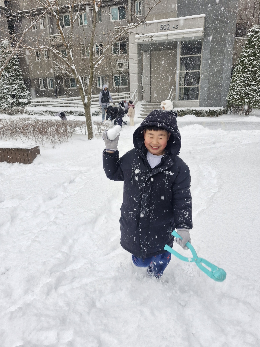 재민이가 눈을 뭉치는지