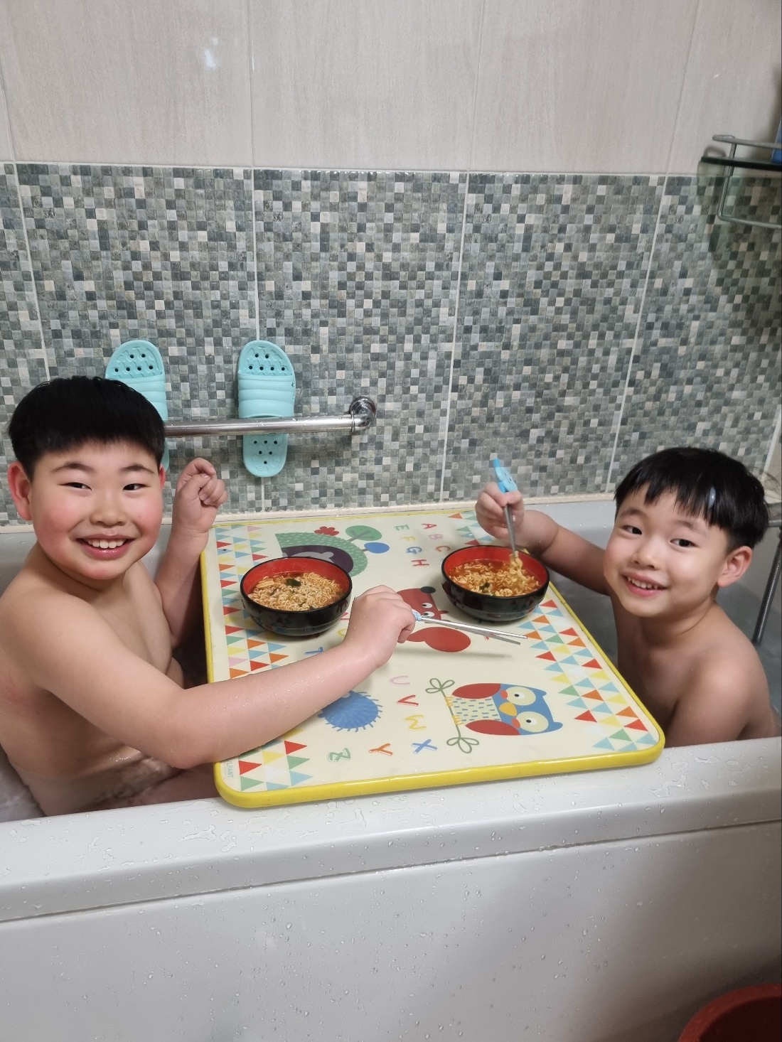 욕조에 라면이 배달되었다